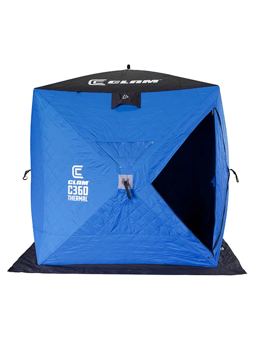 The Clam C360 Thermal Hub packs down small for the anglers on the move. And a thermal skin keeps heat in and reduces propane use. Combine this with advanced hub technology and you have a superior pop-up portable ice shelter— the C-360 Thermal Hub. It also has the head and fishing room comparable to our competitors models. The C-360 Thermal Hub the perfect ice fishing shelter for anglers and their families looking to stay warm and comfortable this winter!