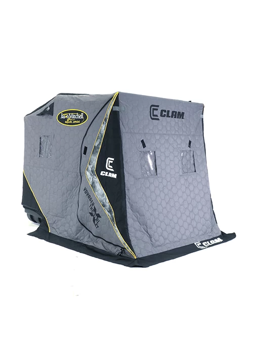 The Jason Mitchell XT Thermal flip-over ice fishing shelter is loaded with all the bells and whistles!  Packed full with all the necessary accessories like a travel cover, bait bucket, rod holders, this shelter helps get anglers all set to hit the ice and start catching fish. In addition to the extreme 1¼” pole system, the Jason Mitchell Thermal X has a full thermal skin to retain heat, save propane and reduce condensation. Includes a seating system with two deluxe seats that are removable and adjustable.