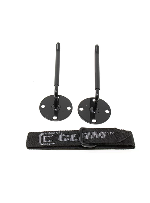 - Includes two brackets that mount to tub and one Velcro strap to keep poles together during transport