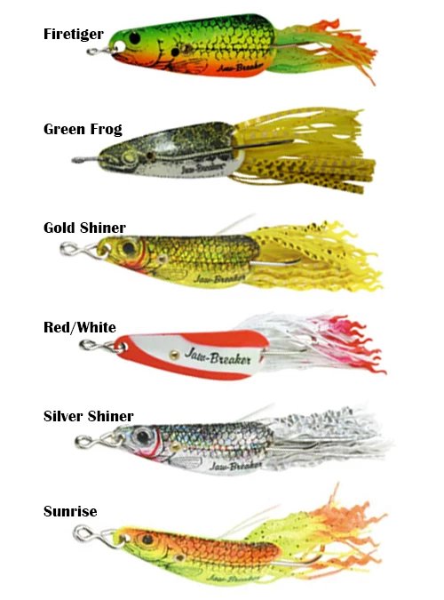The Northland Jaw Breaker Spoon is a longtime favorite for pulling big bass, pike and muskies from heavy cover. Totally weedless design allows casting, pitching and jigging in the thickest lily pads, matted grass, milfoil, hydrilla, reeds and rice. Deadly when crawled, fluttered and twitched through open pockets in vegetation. Use with a stout rod and strong line to quickly haul trophy fish out of thick cover.