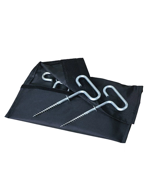 It is simple to keep your Otter Hub House anchored to the ice during periods of high winds with the Otter Ice Anchor Kit. This kit includes replacement screw in stakes for your Hub shelter. Kit includes 4 Stakes, 2 Ropes, and also a black carry pouch that easily stores inside of your Otter Hub storage bag.
