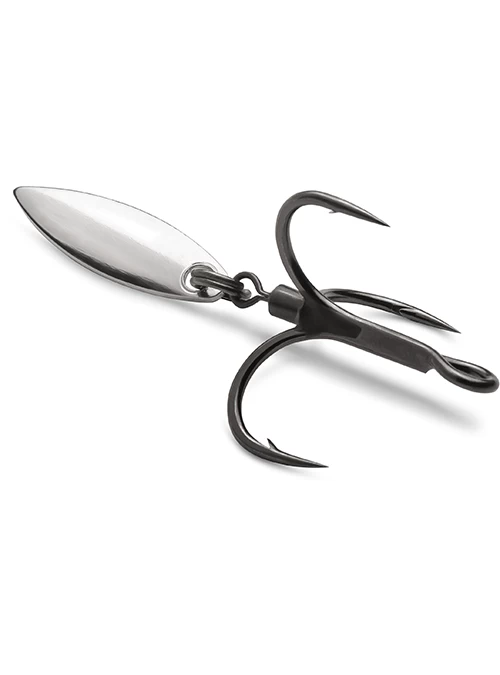 Modeled after a longtime secret among pros, the VMC Bladed Hybrid Treble Shank Treble Hook 1X Hook combines VMC’s razor-sharp hooks with a touch of flash. Make your baits stand out from the competition! Built upon a 7548 short shank black nickel treble hook, this hook features a resin-sealed swivel and a black-nickel willow blade. The blade adds a glimmering accent to your presentation. Constructed with an inline eye, wide gap, and a super-sharp needlepoint. The VMC Bladed Hybrid Treble Short 1X Hook offers a quick and easy way to create a unique presentation.