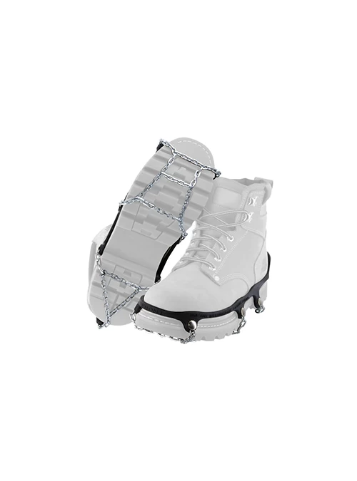 The Yaktrax Chain fit to a wide variety of footwear and provide critical traction in all ice and snow conditions. The individually TIG welded square links provide an abrupt edge that bites into ice, while the ladder pattern design enhances traction on packed snow. Made of case-hardened steel, the links maintain a low profile making them both comfortable and durable for prolonged use.